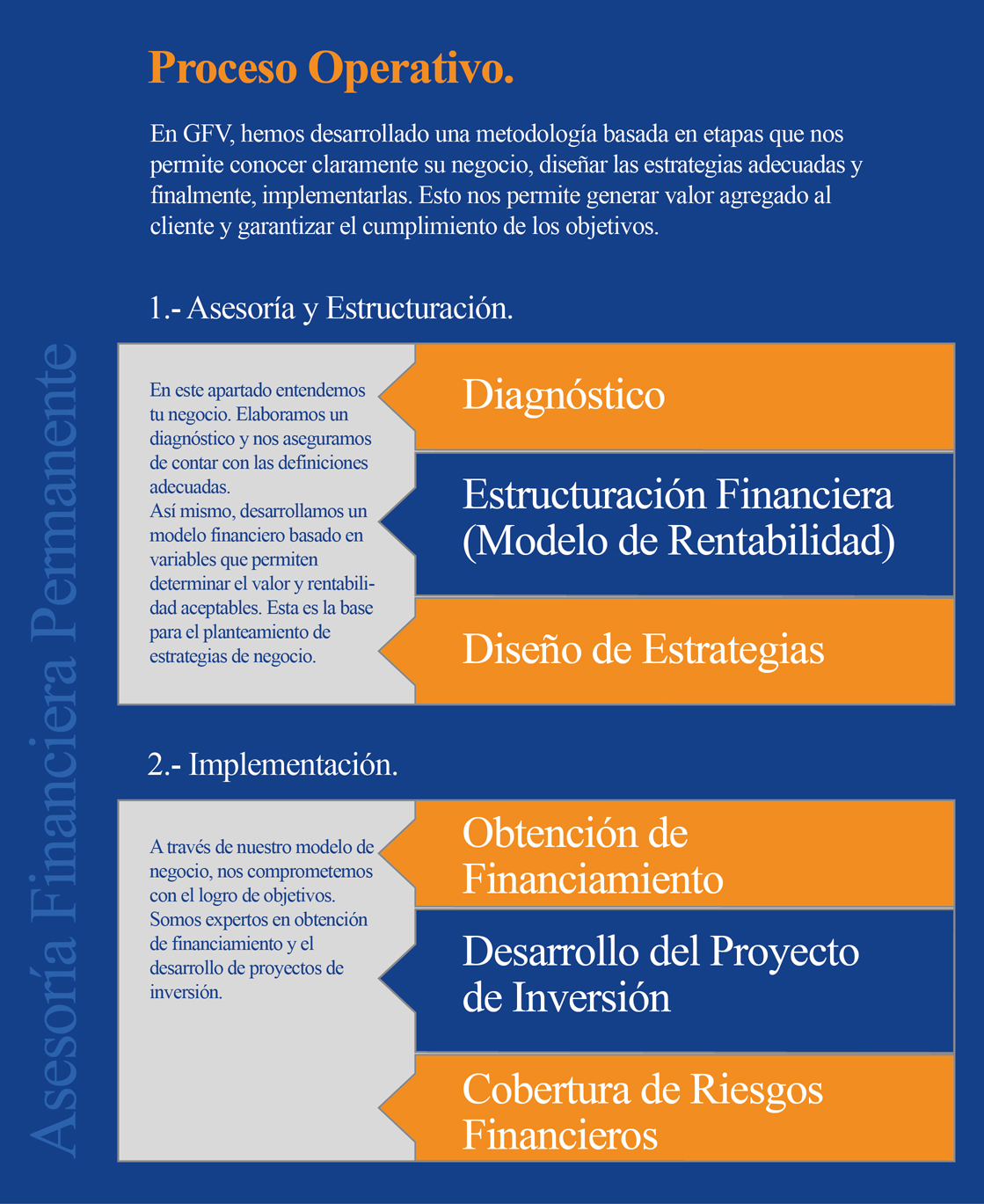 En su división Negocios, GFV es una firma mexicana líder en el mercado de proveedores de consultoría financiera especializada. Nuestros servicios benefician a nuestros clientes con respuestas eficientes, independientes y creativas.